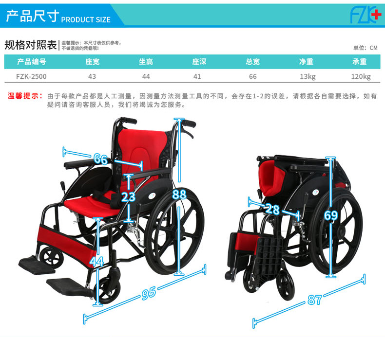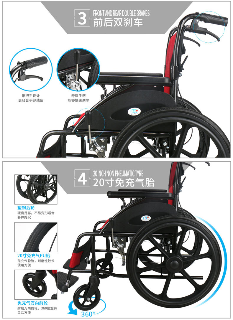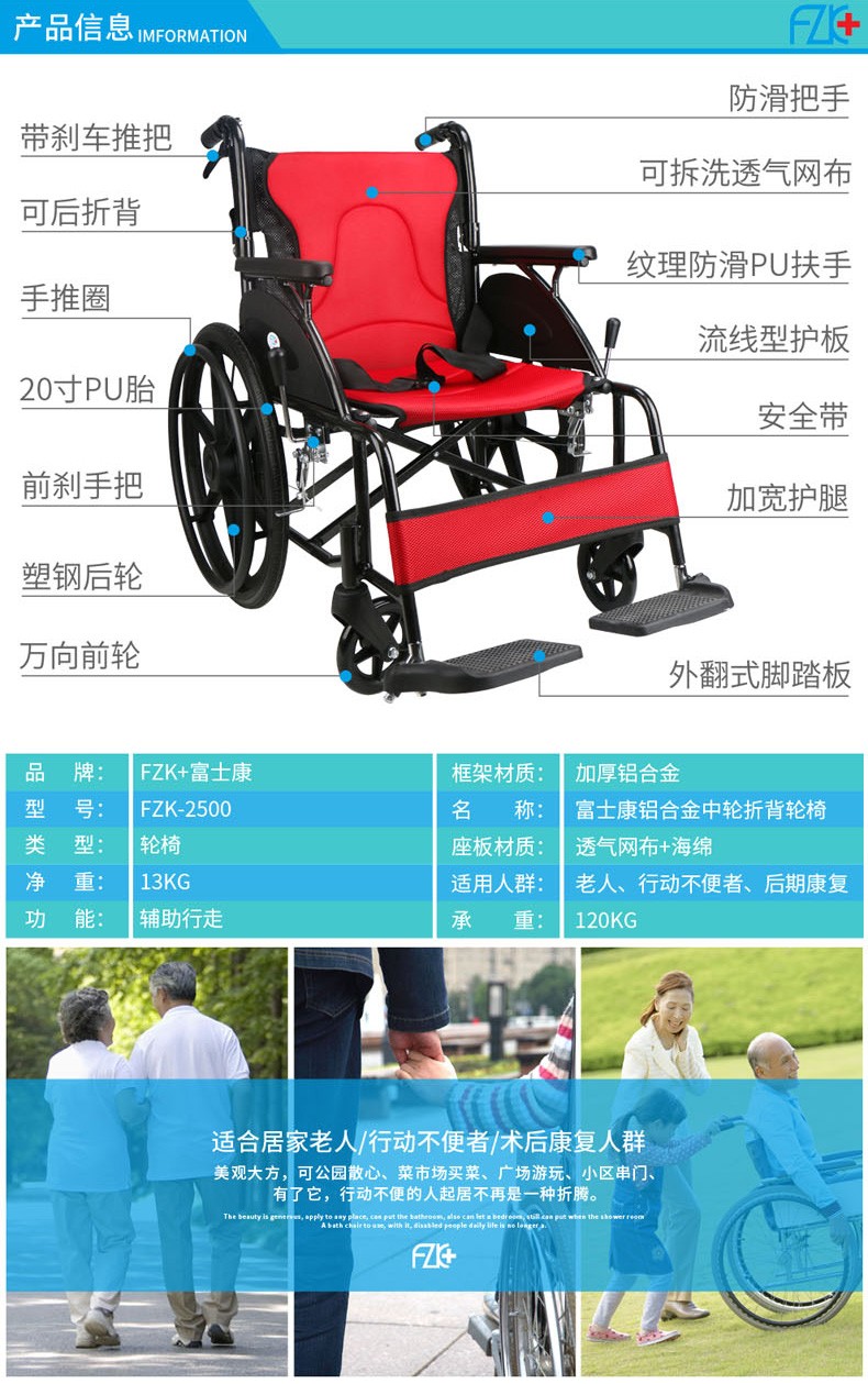 FZK-2500 FOLDING BACK WHEELCHAIR (20"REAR WHEEL)