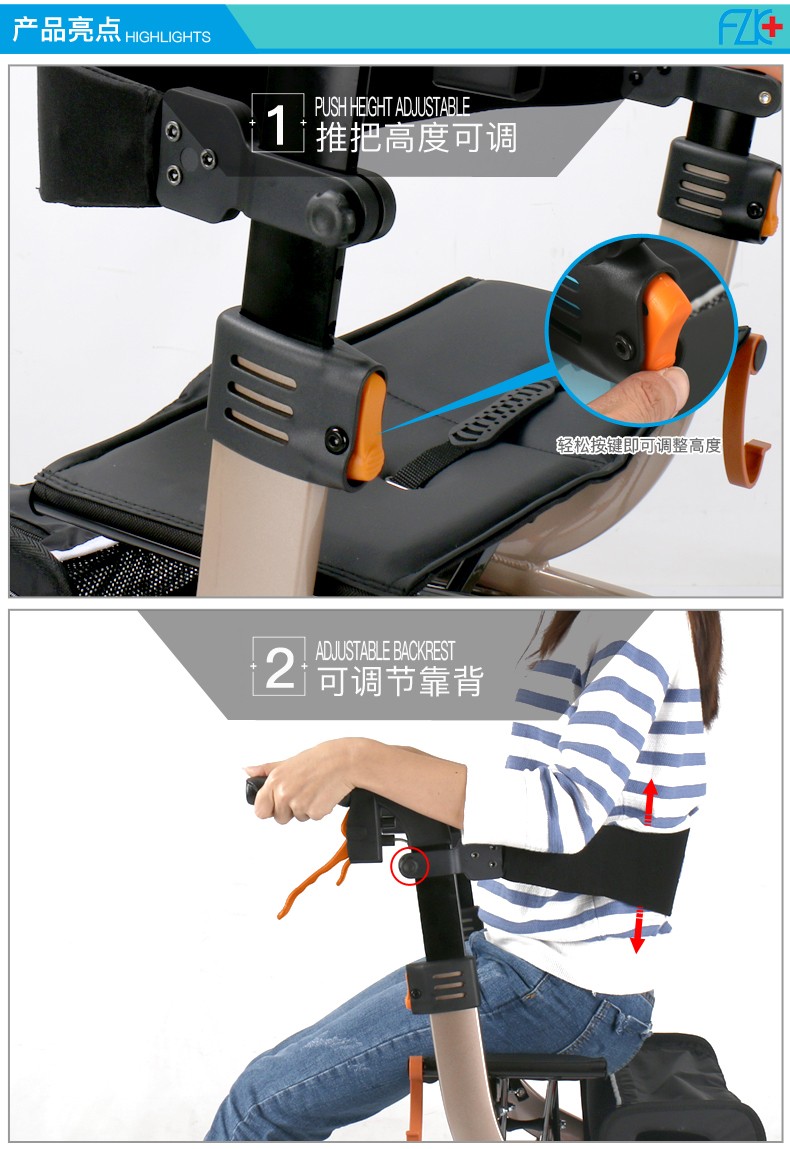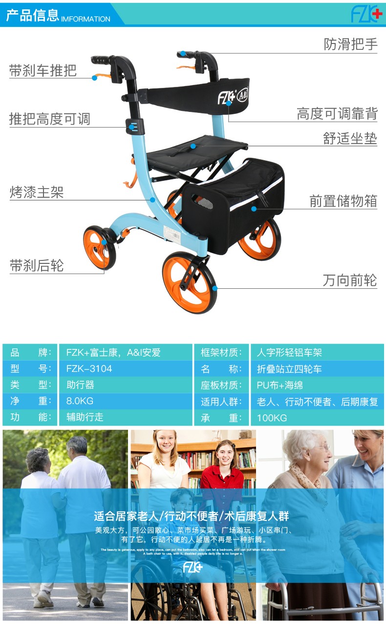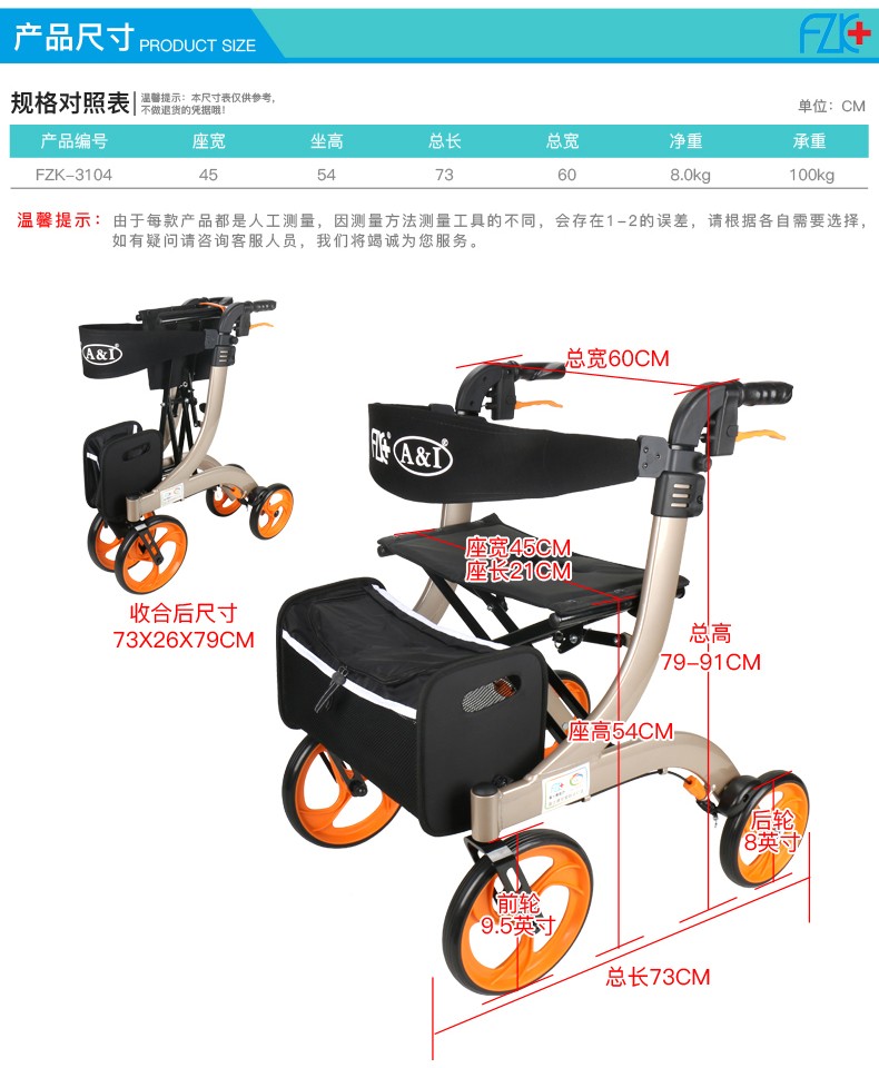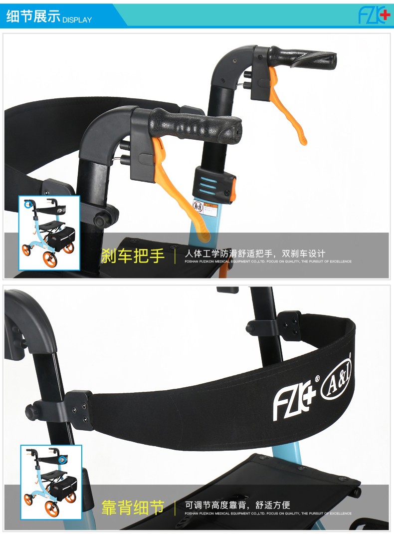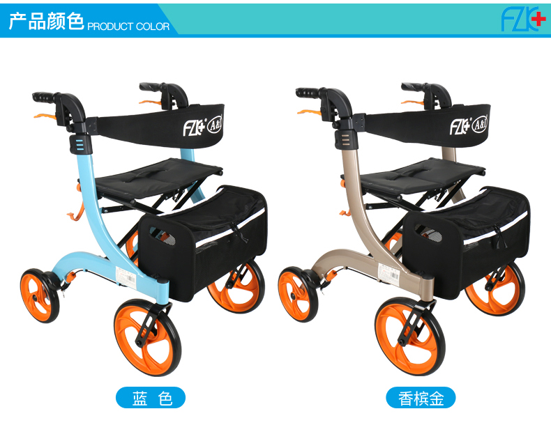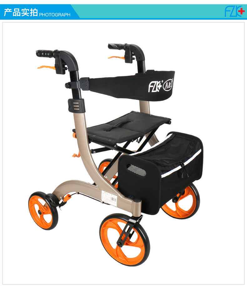 FZK-3104 DELUXE ALUMINUM STAND-UP FOLDING ROLLATOR