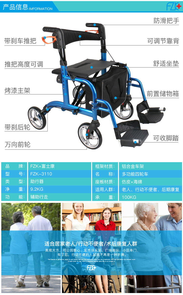 FZK-3110 ALUMINUM MULTIFUNCTION ROLLATOR